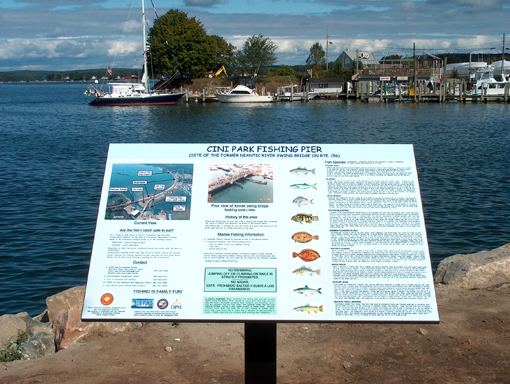The Town of East Lyme has constructed a handicap accessible Fishing Pier at Cini Park(Main St./Route 156). Where the fishing pier is now was once a swing-type bridge that connected the Towns of Niantic and Waterford. This fishing pier, a parking lot, close-by car top launch and park (now known as Cini Park) were built as an added attraction to the area.